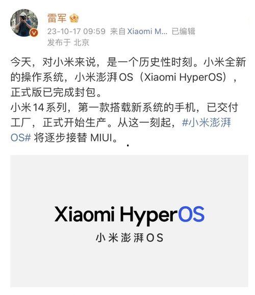 你知道吗?最近互联网上可是炸开了锅,都在热议小米系统澎湃最新版本的爆料。这不,我就迫不及待地来给你揭秘一下这个神秘的新版本,让你提前一睹为快!